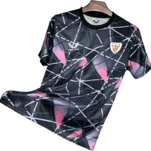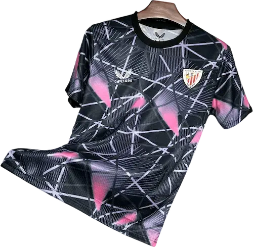 La camiseta Cup Matchday 24/25 de Castore apuesta por un fondo negro de corte entallado con el icónico león del club en negativo/relieve en el frontal, cuello redondo y tejidos técnicos AerTek para evacuación del sudor; está pensada como prenda pre-partido/matchday (calentamiento) y combina estética premium con funcionalidad. Es una pieza con aire retro y vintage reinterpretada en clave moderna y ya figura en comercios oficiales y tiendas especializadas. La han lucido referentes del primer equipo como Iker Muniain, Iñaki Williams, Nico Williams, Oihan Sancet y Unai Simón.