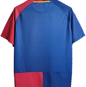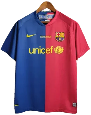 La camiseta local del Barça 2008-09, diseñada por Nike, presenta las clásicas franjas verticales azul y grana, con cuello redondo y un corte moderno y ligero. Es una camiseta retro y vintage muy valorada por coleccionistas, utilizada por jugadores emblemáticos como Lionel Messi, Xavi, Andrés Iniesta, Carles Puyol y Samuel Eto’o, protagonistas de una de las temporadas más exitosas de la historia del club.