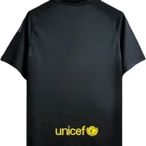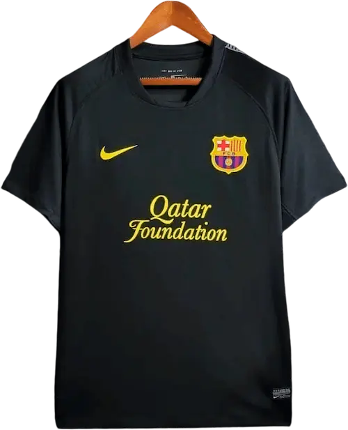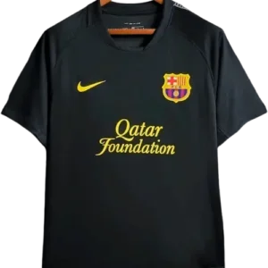 La camiseta visitante del Barça 2011-12, de color negro y diseñada por Nike, combina un estilo elegante y moderno con detalles azulgrana y granas en cuello y mangas, ideal para los partidos fuera de casa. Es una camiseta retro y vintage muy apreciada por coleccionistas, utilizada por jugadores emblemáticos como Lionel Messi, Xavi, Andrés Iniesta, Carles Puyol y David Villa, figuras clave del equipo en esa temporada.